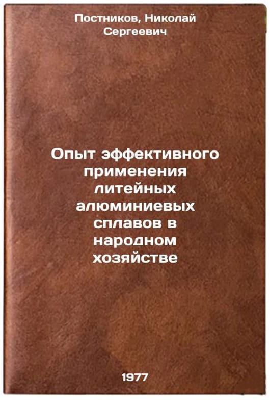 In Russian. Postnikov, Nikolai Sergeevich. Experience of Effective Application of Aluminium Alloys Foundry in the National Economy. Moscow: TsNIITEIMS, 1977. Opyt effektivnogo primeneniya liteynykh alyuminievykh splavov v narodnom khozyaystve. In Russian /Experience in the Effective Application of Aluminium Alloys in the National Economy . All images are for identification of editions only. Several books of the same edition may be available. Please feel free to request photos of available books. SKU7690049
