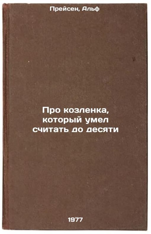 In Russian. Preisen, Alf. About a goat who could count up to ten. Moscow: Det. lit., 1977. Pro kozlenka, kotoryy umel schitat' do desyati. In Russian /About a kid who could count up to ten . All images are for identification of editions only. Several books of the same edition may be available. Please feel free to request photos of available books. SKU7690314