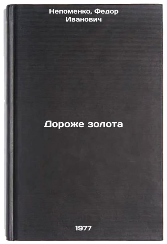 In Russian. Nepomenko, Fedor Ivanovich. More expensive than gold. Dnipropetrovsk: Promin, 1977. All images are for identification of editions only. Several books of the same edition may be available. Please feel free to request photos of available books. SKU7691205