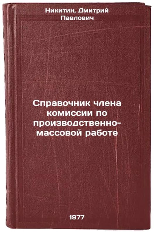 In Russian. Nikitin, Dmitry Pavlovich. Reference book of a member of the commission on industrial and mass work. Moscow: Profizdat, 1977. Spravochnik chlena komissii po proizvodstvenno-massovoy rabote. In Russian /Manual of a member of the Commission on Mass Work . All images are for identification of editions only. Several books of the same edition may be available. Please feel free to request photos of available books. SKU7691407