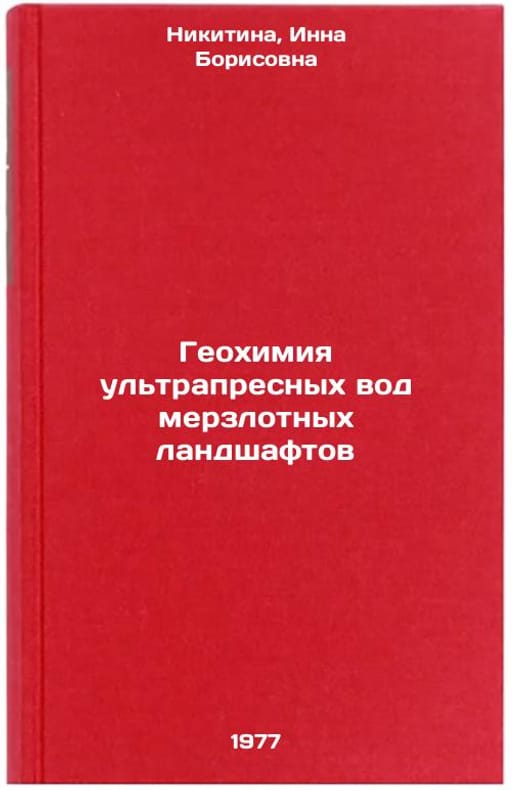 In Russian. Nikitina, Inna Borisovna. The Geochemistry of Ultra-Freshwater in Permafrost Landscapes. Moscow: Science, 1977. Geokhimiya ul'trapresnykh vod merzlotnykh landshaftov. In Russian /The Geochemistry of Ultra-Freshwater in Permafrost Landscapes . All images are for identification of editions only. Several books of the same edition may be available. Please feel free to request photos of available books. SKU7691426