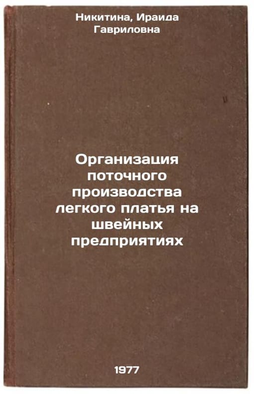 In Russian. Nikitina, Iraida Gavrilovna. Organization of production of light dress in sewing enterprises. Moscow: 1977. Organizatsiya potochnogo proizvodstva legkogo plat'ya na shveynykh predpriyatiyakh. In Russian /Organization of production of light clothing in apparel factories . All images are for identification of editions only. Several books of the same edition may be available. Please feel free to request photos of available books. SKU7691428