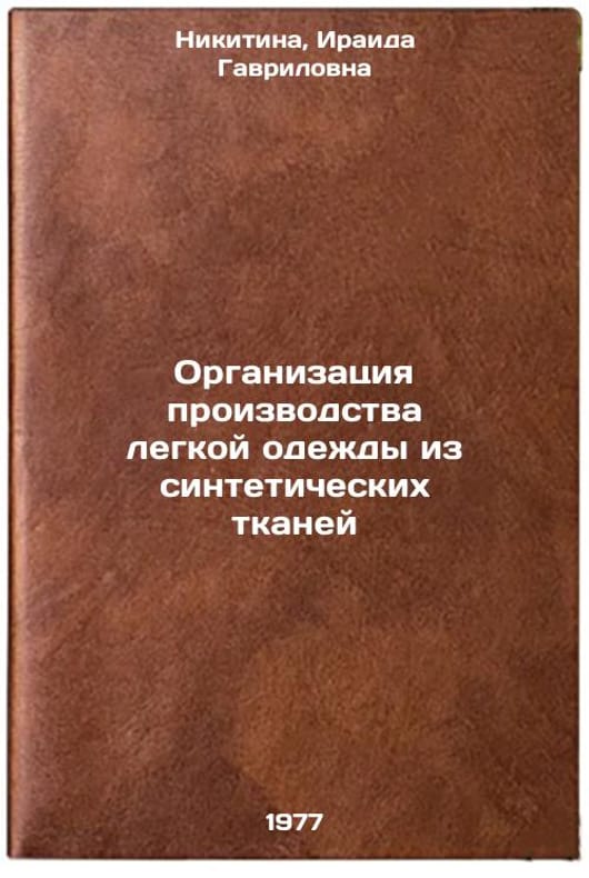 In Russian. Nikitina, Iraida Gavrilovna. Organization of production of light clothing from synthetic fabrics. Moscow: Light Industry, 1977. Organizatsiya proizvodstva legkoy odezhdy iz sinteticheskikh tkaney. In Russian /Organization of production of light clothing from synthetic fabrics . All images are for identification of editions only. Several books of the same edition may be available. Please feel free to request photos of available books. SKU7691429