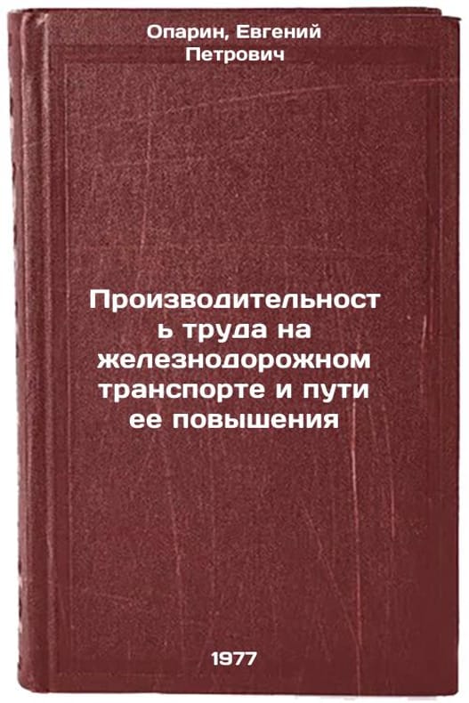 In Russian. Oparin, Evgeniy Petrovich. Productivity in rail transport and ways to increase it. Moscow: Transport, 1977. Proizvoditel'nost' truda na zheleznodorozhnom transporte i puti ee povysheniya. In Russian /Productivity in rail transport and ways to increase it . All images are for identification of editions only. Several books of the same edition may be available. Please feel free to request photos of available books. SKU7691750