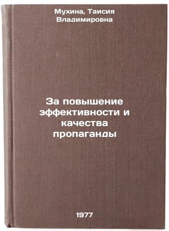 In Russian. Mukhina, Taisiya Vladimirovna. For Improving the Efficiency and Quality of Propaganda. Moscow: 1977. Za povyshenie effektivnosti i kachestva propagandy. In Russian /To improve the effectiveness and quality of advocacy . All images are for identification of editions only. Several books of the same edition may be available. Please feel free to request photos of available books. SKU7692125