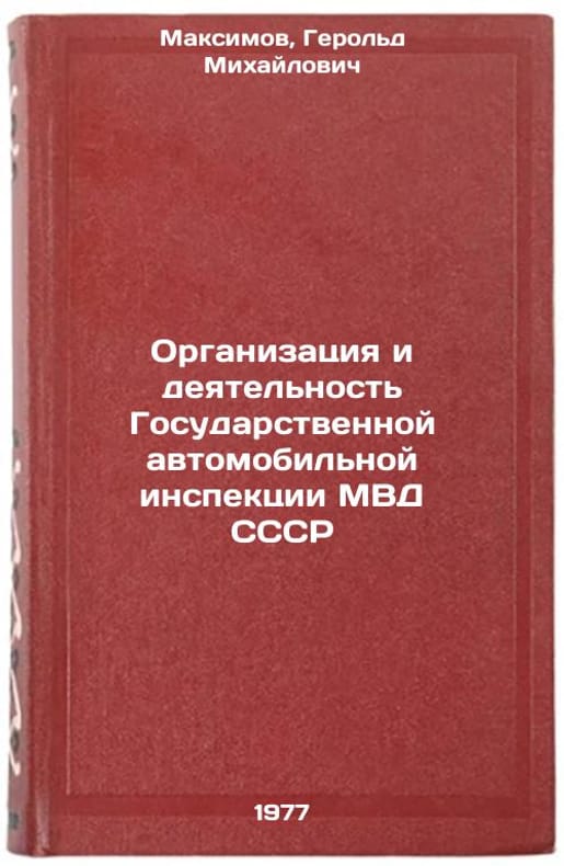 In Russian. Maksimov, Gerold Mikhailovich. Organization and Activities of the State Automobile Inspectorate of the Ministry of Internal Affairs of the USSR. Moscow: 1977. Organizatsiya i deyatel'nost' Gosudarstvennoy avtomobil'noy inspektsii MVD SSSR. In Russian /Organization and Activities of the State Automobile Inspectorate of the Ministry of Internal Affairs of the USSR . All images are for identification of editions only. Several books of the same edition may be available. Please feel free to request photos of available books. SKU7693175