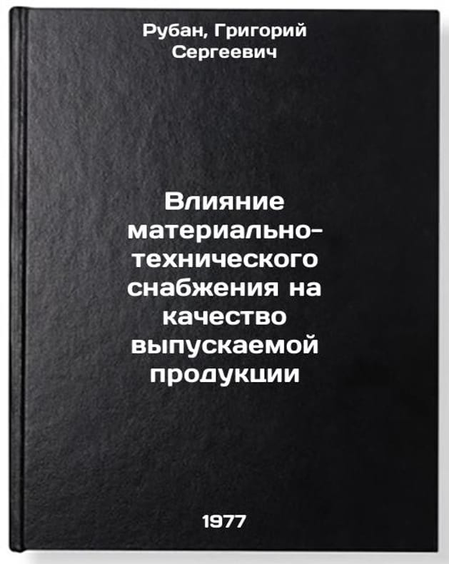 In Russian. Ruban, Grigory Sergeevich. The Impact of Material Supply on the Quality of Output. Kyiv: 1977. Vliyanie material'no-tekhnicheskogo snabzheniya na kachestvo vypuskaemoy produktsii. In Russian /The impact of logistics on the quality of output . All images are for identification of editions only. Several books of the same edition may be available. Please feel free to request photos of available books. SKU7693373