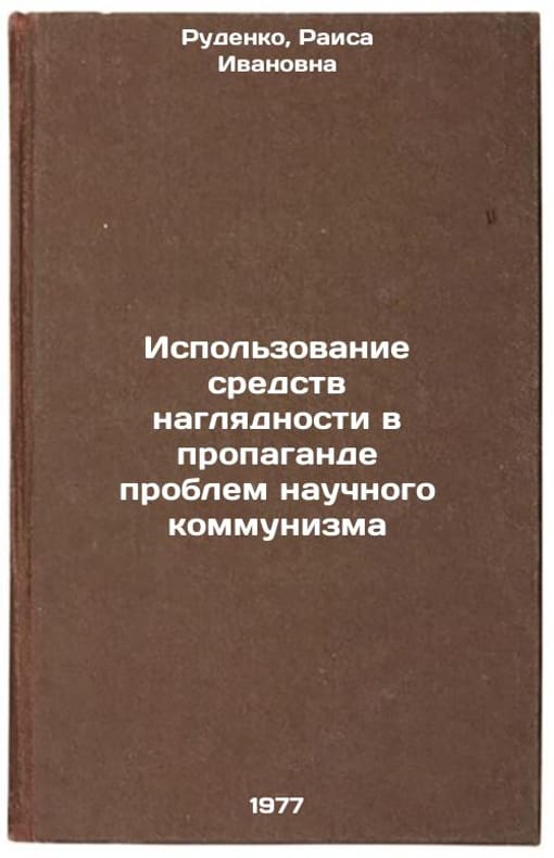 In Russian. Rudenko, Raisa Ivanovna. Use of visual aids in propagandizing the problems of scientific communism. Moscow: Znanie (Znanie) RSFSR, 1977. Ispol'zovanie sredstv naglyadnosti v propagande problem nauchnogo kommunizma. In Russian /The use of visual aids in propagating the problems of scientific communism . All images are for identification of editions only. Several books of the same edition may be available. Please feel free to request photos of available books. SKU7693402