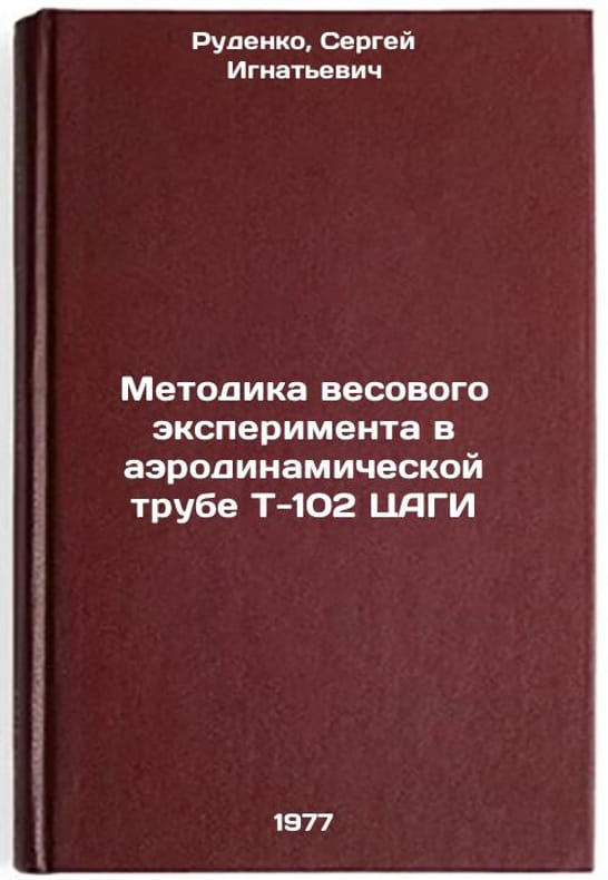 In Russian. Rudenko, Sergey Ignatievich. Methodology of the weight experiment in the wind tunnel T-102 of TsAGI. Moscow: 1977. Metodika vesovogo eksperimenta v aerodinamicheskoy trube T-102 TsAGI. In Russian /Technique of the weight experiment in the wind tunnel T-102 CAGI . All images are for identification of editions only. Several books of the same edition may be available. Please feel free to request photos of available books. SKU7693403