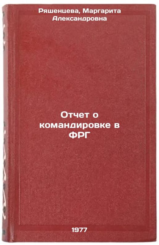 In Russian. Ryashentseva, Margarita Alexandrovna. Report on mission to Germany. Moscow: 1977. All images are for identification of editions only. Several books of the same edition may be available. Please feel free to request photos of available books. SKU7693927