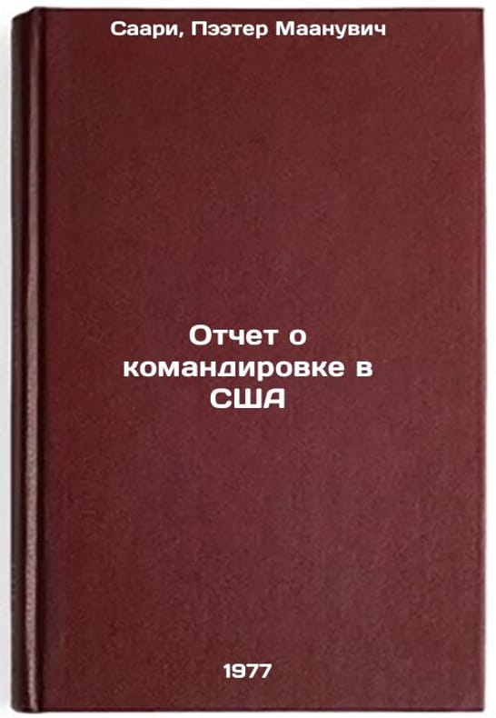 In Russian. Saari, Peeter Maanuvich. Report on a mission to the USA. Moscow: 1977. Otchet o komandirovke v SShA. In Russian /Report on a mission to the United States . All images are for identification of editions only. Several books of the same edition may be available. Please feel free to request photos of available books. SKU7693950