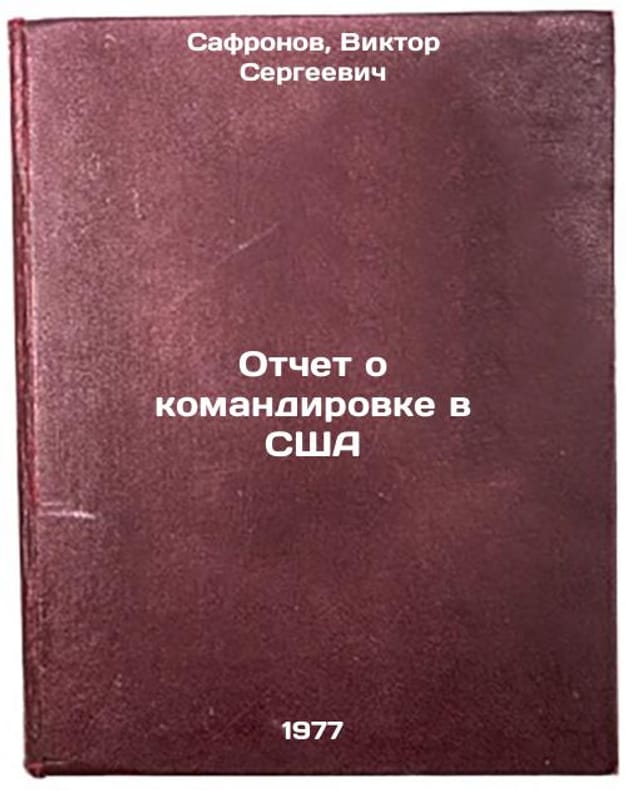 In Russian. Safronov, Viktor Sergeevich. Report on a mission to the USA. Moscow: 1977. Otchet o komandirovke v SShA. In Russian /Report on a mission to the United States . All images are for identification of editions only. Several books of the same edition may be available. Please feel free to request photos of available books. SKU7694444