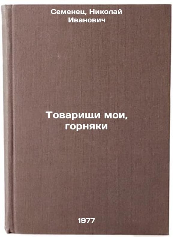 In Russian. Semenets, Nikolai Ivanovich. My comrades, miners. Simferopol: Tavriya, 1977. All images are for identification of editions only. Several books of the same edition may be available. Please feel free to request photos of available books. SKU7694921