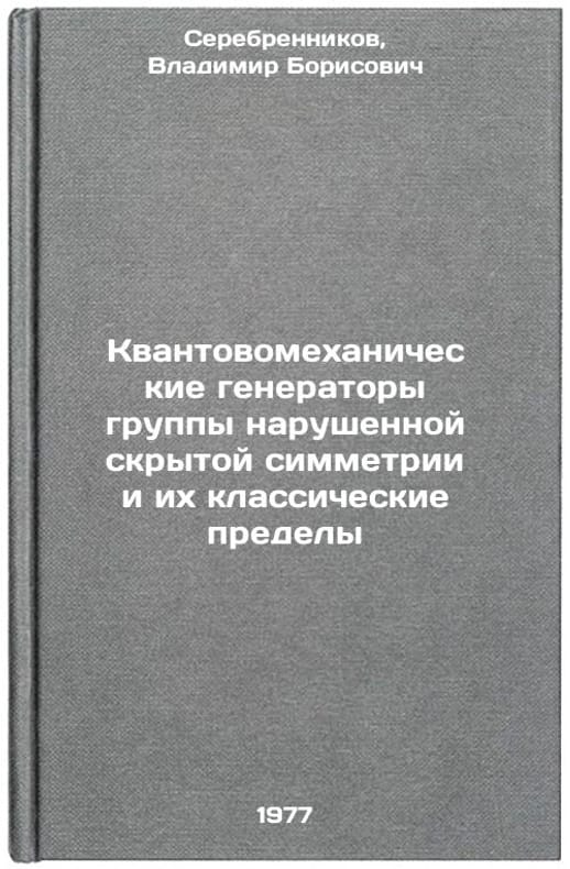 In Russian. Serebrennikov, Vladimir Borisovich. Quantum Mechanical Generators of a Group of Disrupted Hidden Symmetry and Their Classical Limits. Moscow: 1977. Kvantovomekhanicheskie generatory gruppy narushennoy skrytoy simmetrii i ikh klassicheskie predely. In Russian /Quantum Mechanical Generators of Disrupted Hidden Symmetry Group and their Classical Limits . All images are for identification of editions only. Several books of the same edition may be available. Please feel free to request photos of available books. SKU7695143
