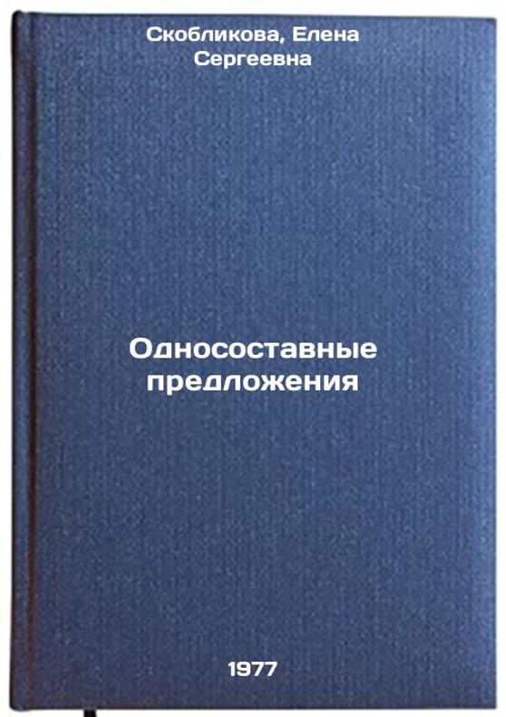In Russian. Skoblikova, Elena Sergeevna. One-component sentences. Kuibyshev: Kuibyshev. All images are for identification of editions only. Several books of the same edition may be available. Please feel free to request photos of available books. SKU7695667