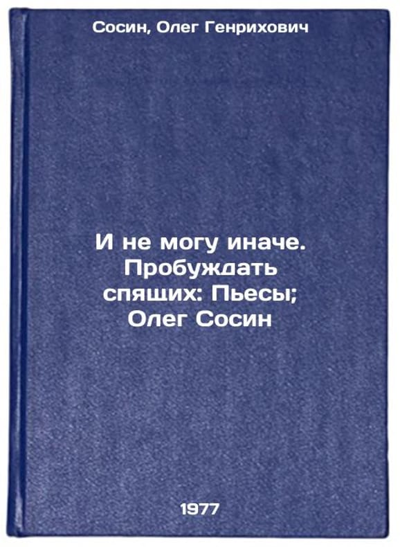 "In Russian. Sosin, Oleg Genrikhovich. And I can't do it otherwise. Wake up the sleepers: [Plays]; Oleg Sosin. Moscow: Art, 1977. I ne mogu inache. Probuzhdat' spyashchikh: P'esy; Oleg Sosin. In Russian /And I can't do it otherwise. Wake up the sleepers: Plays; Oleg Sosin . All images are for identification of editions only. Several books of the same edition may be available. Please feel free to request photos of available books. SKU7696532"