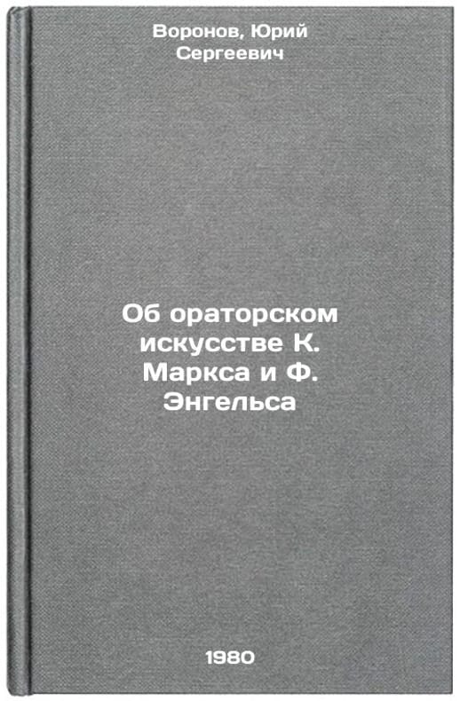 In Russian. Voronov, Yuri Sergeevich. On the oratorical art of K. Marx and F. Engels. Saratov: 1980. Ob oratorskom iskusstve K. Marksa i F. Engel'sa. In Russian /On the Oratory Art of K. Marx and F. Engels . All images are for identification of editions only. Several books of the same edition may be available. Please feel free to request photos of available books. SKU7887414