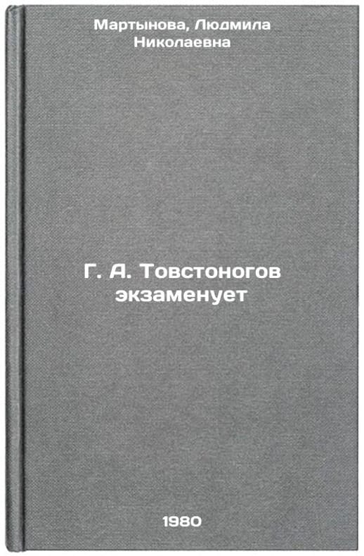 In Russian. Martynova, Lyudmila Nikolaevna. G. A. Tovstonogov examines. Leningrad: 1980. All images are for identification of editions only. Several books of the same edition may be available. Please feel free to request photos of available books. SKU8048871
