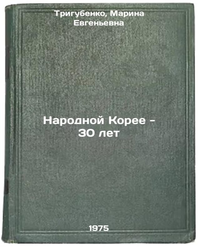 In Russian. Trigubenko, Marina Evgenevna. People's Korea is 30 years old. Moscow: Znanie, 1975. All images are for identification of editions only. Several books of the same edition may be available. Please feel free to request photos of available books. SKU8416194