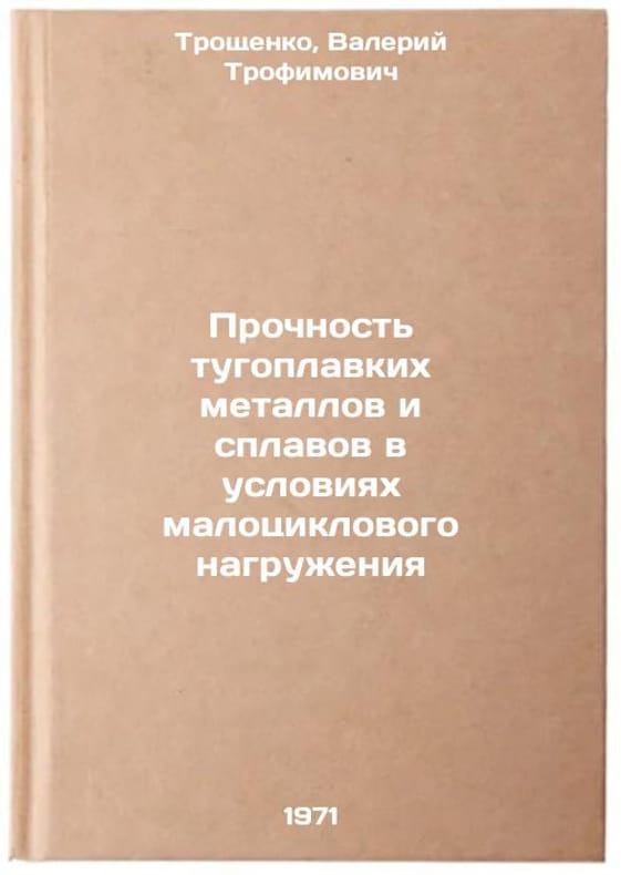 In Russian. Troshchenko, Valery Trofimovich. Strength of refractory metals and alloys under low-cyclical loading conditions. Kaunas: 1971. Prochnost' tugoplavkikh metallov i splavov v usloviyakh malotsiklovogo nagruzheniya. In Russian /Strength of refractory metals and alloys under low-cycle loading . All images are for identification of editions only. Several books of the same edition may be available. Please feel free to request photos of available books. SKU8418218