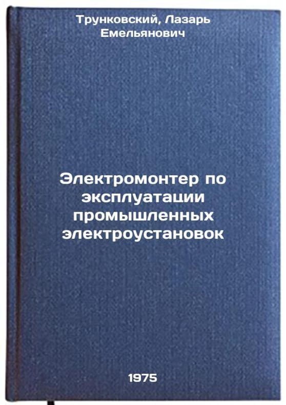 Short description: In Russian. Trunkovsky, Lazar Emelyanovich. Electrician for the operation of industrial electrical installations. Moscow: Proftekhizdat, 1961. Elektromonter po ekspluatatsii promyshlennykh elektroustanovok. In Russian /Industrial Electrical Installation Electrician . The image is provided for reference only. It may reflect condition of one of the available copies or only help in identifying the edition. Please feel free to contact us for a detailed description of the copies available. SKU8459393
