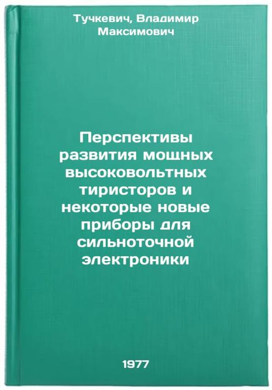 In Russian. Tuchkevich, Vladimir Maksimovich. Prospects for the development of powerful high-voltage thyristors and some new devices for high-current electronics. Moscow: 1977. Perspektivy razvitiya moshchnykh vysokovol'tnykh tiristorov i nekotorye novye pribory dlya sil'notochnoy elektroniki. In Russian /Prospects for high-voltage thyristors and some new devices for high-precision electronics . All images are for identification of editions only. Several books of the same edition may be available. Please feel free to request photos of available books. SKU8425863