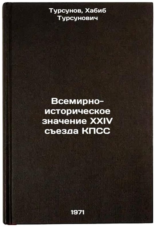 In Russian. Tursunov, Khabib Tursunovich. World Historical Significance of the XXIV Congress of the CPSU. Tashkent: Uzbekistan, 1971. Vsemirno-istoricheskoe znachenie XXIV sezda KPSS. In Russian /World Historical Significance of the 24th Congress of the CPSU . All images are for identification of editions only. Several books of the same edition may be available. Please feel free to request photos of available books. SKU8427545