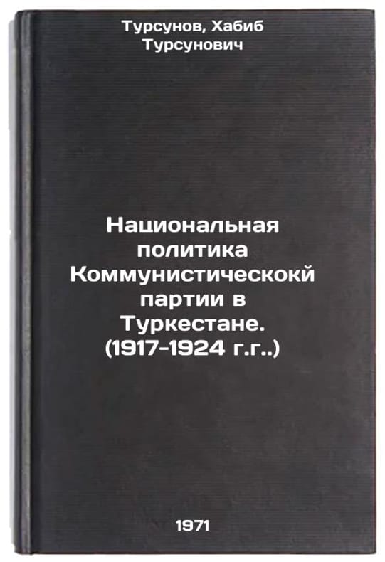 In Russian. Tursunov, Khabib Tursunovich. National Policy of the Communist Party in Turkestan (1917-1924). Tashkent: Uzbekistan, 1971. Natsional'naya politika Kommunisticheskoky partii v Turkestane. (1917-1924 gg.). In Russian /National Policy of the Communist Party in Turkestan. (1917-1924) . All images are for identification of editions only. Several books of the same edition may be available. Please feel free to request photos of available books. SKU8427549