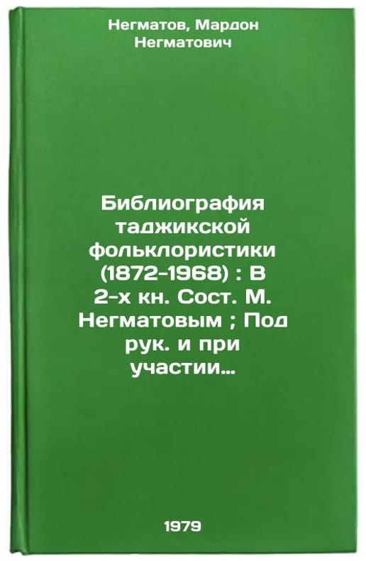 "Short description: In Russian. Negmatov, Mardon Negmatovich. Bibliography of Tajik folklore (1872-1968): [In the second book] Compiled by M. Negmatov; Under the hand and with the participation of I. Levin Book 2. Dushanbe: Donish, Bibliografiya tadzhikskoy folkloristiki (1872-1968): V 2-kh kn. Sost. M. Negmatovym; Pod ruk. i pri uchastii I. Levina Kn. 2/Bibliography of Tajik Folklore (1872-1968): In Book 2 by M. Negmatov; Pod ruk. and with the participation of I. Levin Book 2 In Russian. All images are for identification of editions only. Several books of the same edition may be available. Please feel free to request photos of available books. SKU993482"