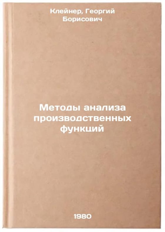 In Russian. Kleiner, Georgy Borisovich. Methods of Analysis of Production Functions. Moscow: Informelectro, 1980. Metody analiza proizvodstvennykh funktsiy. In Russian /Methods for analyzing business functions . All images are for identification of editions only. Several books of the same edition may be available. Please feel free to request photos of available books. SKU994504