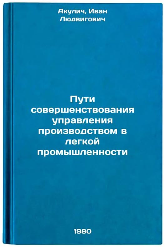 In Russian. Akulich, Ivan Lyudvigovich. Ways to Improve Production Management in Light Industry. Moscow: Light Industry, 1980. Puti sovershenstvovaniya upravleniya proizvodstvom v legkoy promyshlennosti. In Russian /Ways to Improve Manufacturing Management in Light Industry . All images are for identification of editions only. Several books of the same edition may be available. Please feel free to request photos of available books. SKU995089