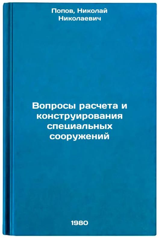In Russian. Popov, Nikolai Nikolaevich. Questions of calculation and design of special constructions. Moscow: Stroyizdat, 1980. Voprosy rascheta i konstruirovaniya spetsial'nykh sooruzheniy. In Russian /Issues of calculation and design of special structures . All images are for identification of editions only. Several books of the same edition may be available. Please feel free to request photos of available books. SKU997003