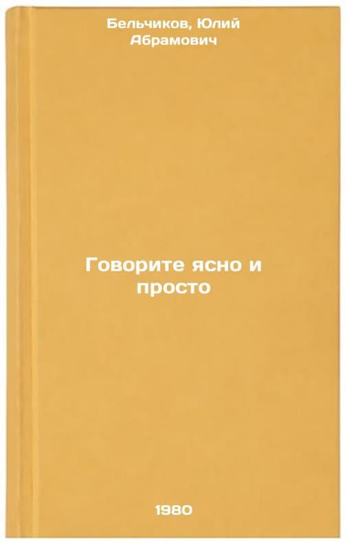 In Russian. Belchikov, Yuliy Abramovich. Speak clearly and simply. All images are for identification of editions only. Several books of the same edition may be available. Please feel free to request photos of available books. SKU997245