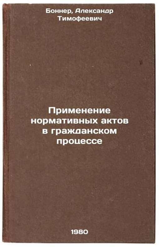 In Russian. Bonner, Alexander Timofeevich. Application of Normative Acts in Civil Procedure. Moscow: Yurid. lit., 1980. Primenenie normativnykh aktov v grazhdanskom protsesse. In Russian /Application of Regulations in Civil Procedure . All images are for identification of editions only. Several books of the same edition may be available. Please feel free to request photos of available books. SKU997847