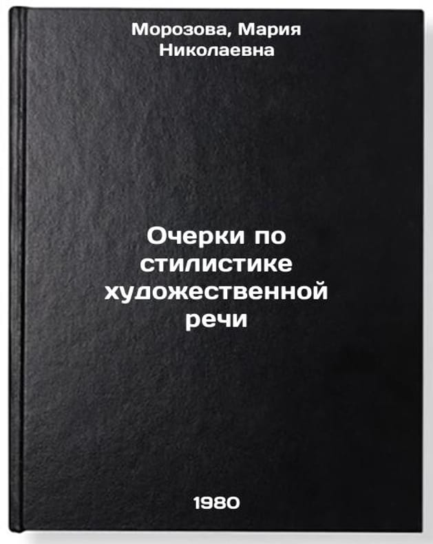 In Russian. Morozova, Maria Nikolaevna. Essays on the style of artistic speech. Moscow: Moscow State University Publishing House, 1980. Ocherki po stilistike khudozhestvennoy rechi. In Russian /Essays on the Style of Art Speech . All images are for identification of editions only. Several books of the same edition may be available. Please feel free to request photos of available books. SKU999046