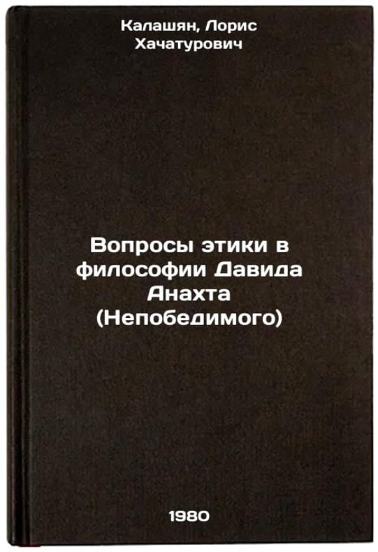 In Russian. Kalashyan, Loris Khachaturovich. Ethical Issues in the Philosophy of David Anakht (The Invincible). Yerevan: Editions of the Academy of Sciences of the Armenian SSR,. Voprosy etiki v filosofii Davida Anakhta (Nepobedimogo). In Russian /Ethical Questions in the Philosophy of David Anaht (The Invincible) . All images are for identification of editions only. Several books of the same edition may be available. Please feel free to request photos of available books. SKU999330