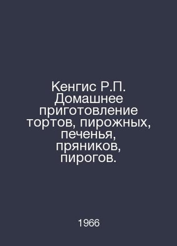 Kengis R. Home-made cakes, pastries, cookies, gingerbread houses, pies. In Russian /Kengis R. Domashnee prigotovlenie tortov, pirozhnykh, pechenya, pryanikov, pirogov. Shape. Artist. N.N. Simagina. M. Food industry. 1966.. Contact us for details or to request photos of available books. SKUalb001ecb64077eee7a.
