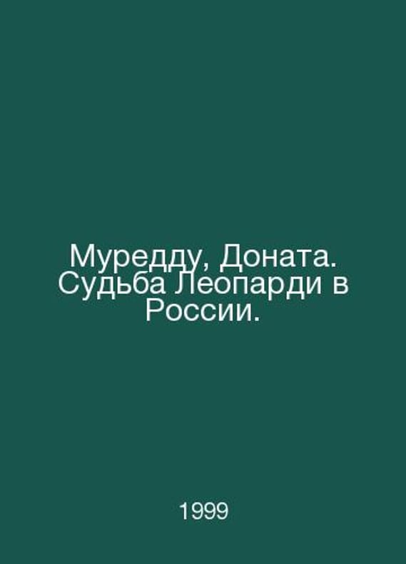 Mureddu, Donata. The Fate of Leopards in Russia. In Russian /Mureddu, Donata. Sudba Leopardi v Rossii. M. Youth 1999. Contact us for details or to request photos of available books. Delivery of this book could take longer than normal due to additional handling time before shipping, and no rush delivery options are available. Please let us know if you have a specific date by which you need to receive your order. SKUalb0126f641e629ef64
