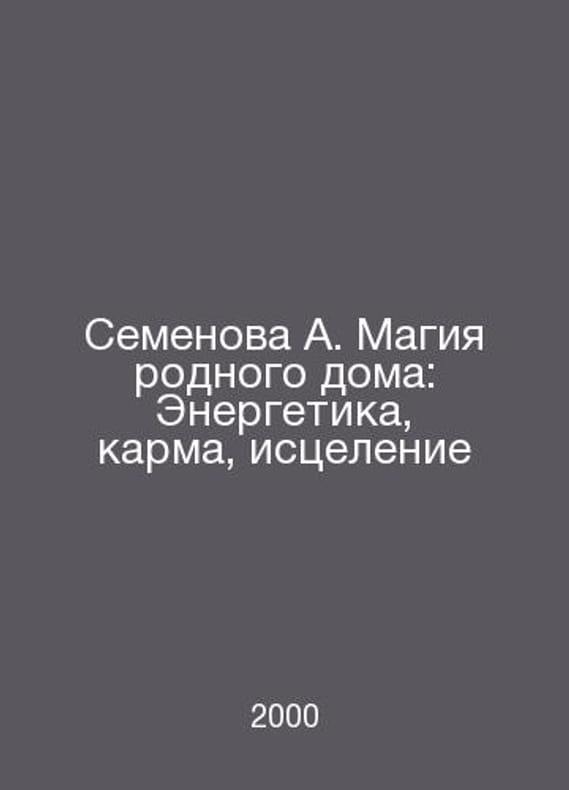 Semyonova A. The magic of the native home: Energy, Karma, Healing In Russian /Semenova A. Magiya rodnogo doma: Energetika, karma, istselenie SPB 2000. Contact us for details or to request photos of available books. Delivery of this book could take longer than normal due to additional handling time before shipping, and no rush delivery options are available. Please let us know if you have a specific date by which you need to receive your order. SKUalb01484ff2d0571ca2