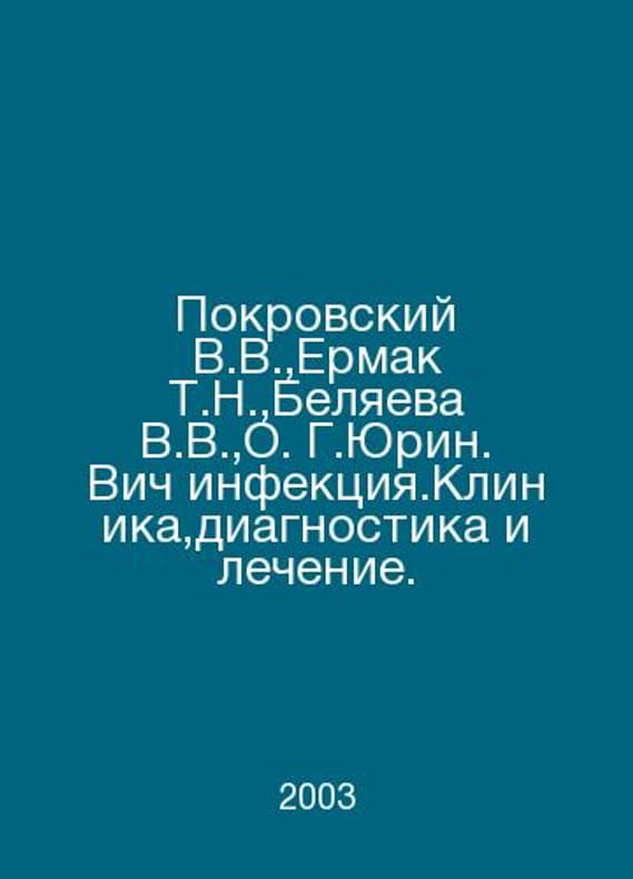 Pokrovsky V.V., Ermak T.N., Belyaeva V.V., O.G.Yurin. Vich infection. Clinic, diagnosis and treatment. In Russian /Pokrovskiy V.V., Ermak T.N., Belyaeva V.V., O. G.Yurin. Vich infektsiya.Klinika,diagnostika i lechenie. M. Geotar Med. 2003.Contact us for details or to request photos of available books. Delivery of this book could take longer than normal due to additional handling time before shipping, and no rush delivery options are available. Please let us know if you have a specific date by which you need to receive your order.SKUalb01cf81649316307e