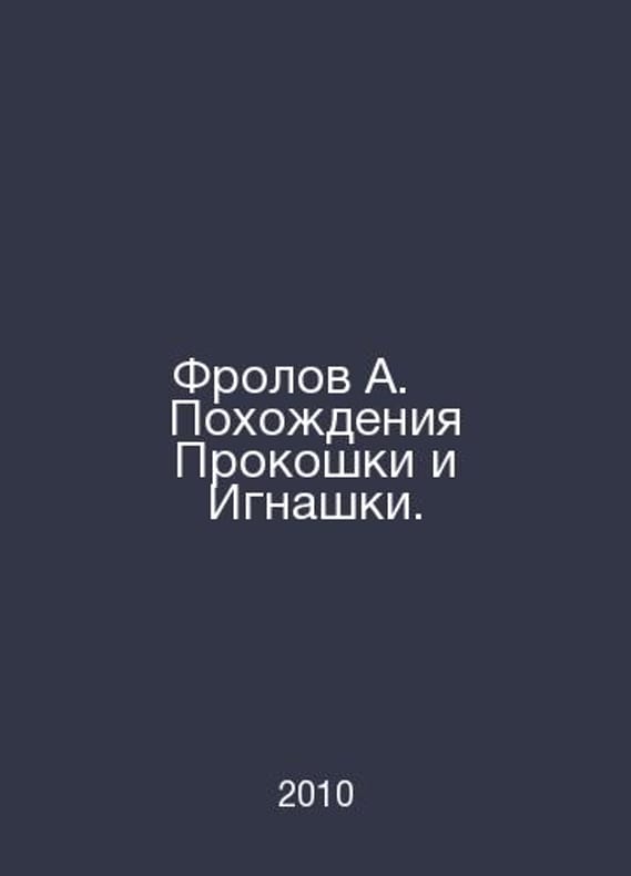 Frolov A. The Adventures of Prokoshka and Ignashka. In Russian /Frolov A.† Pokhozhdeniya Prokoshki i Ignashki. The fantastic rarity of Yekaterinburg Tardis 2010.Contact us for details or to request photos of available books. Delivery of this book could take longer than normal due to additional handling time before shipping, and no rush delivery options are available. Please let us know if you have a specific date by which you need to receive your order.SKUalb024160a25c895688