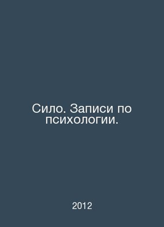 Power. Entries in psychology. In Russian /Silo. Zapisi po psikhologii. M.: Spring 2012. Contact us for details or to request photos of available books. Delivery of this book could take longer than normal due to additional handling time before shipping, and no rush delivery options are available. Please let us know if you have a specific date by which you need to receive your order. SKUalb02942f3e654e6758