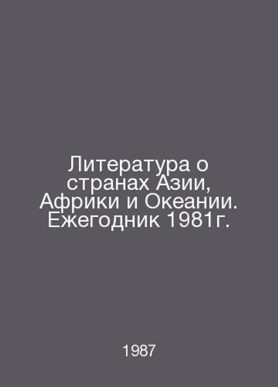 Literature about Asia, Africa, and Oceania. Yearbook 1981. In Russian /Literatura o stranakh Azii, Afriki i Okeanii. Ezhegodnik 1981g. M. Science 1987.. Contact us for details or to request photos of available books. SKUalb034a92f7b4187a30.