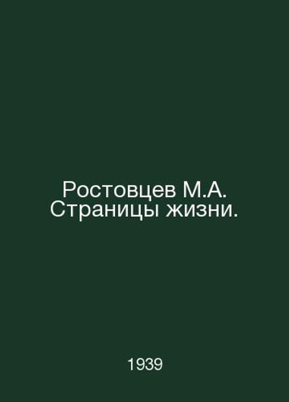 Rostovtsev M.A. Pages of Life. In Russian /Rostovtsev M.A. Stranitsy zhizni. M. Academic Small Opera House 1939.. Contact us for details or to request photos of available books. SKUalb03d41bc791cfe05e.
