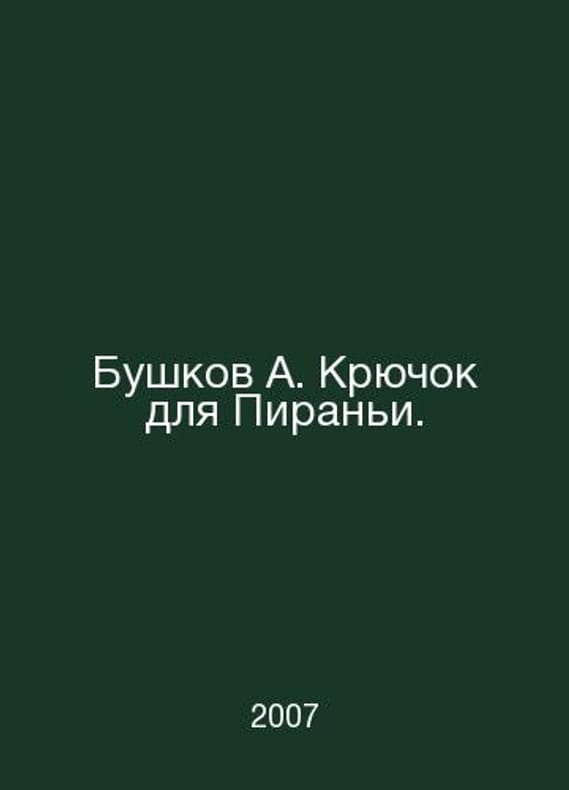 Bushkov A. Hook for Piranha. In Russian /Bushkov A. Kryuchok dlya Pirani. M 2007.Contact us for details or to request photos of available books. Delivery of this book could take longer than normal due to additional handling time before shipping, and no rush delivery options are available. Please let us know if you have a specific date by which you need to receive your order.SKUalb03fd9f09c327c116