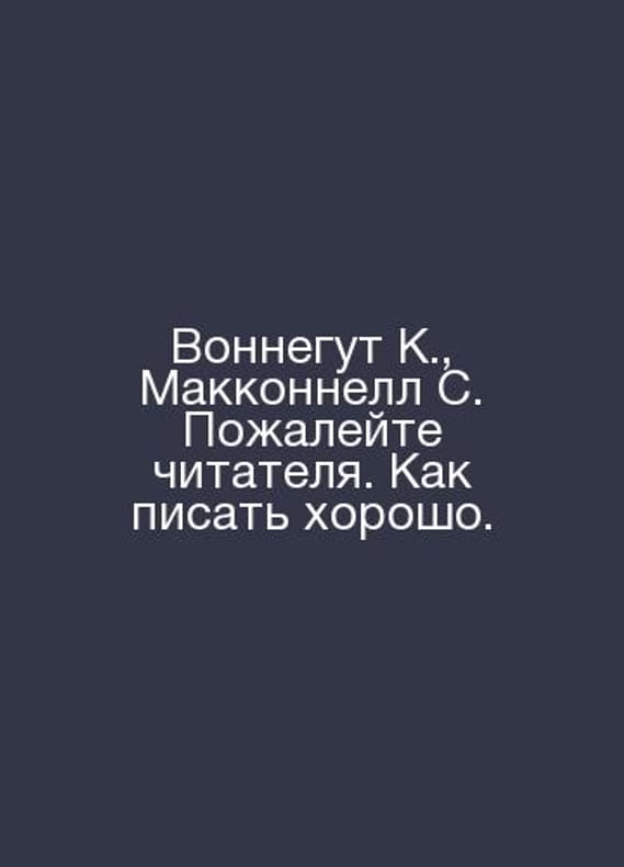 Vonnegut K., McConnell S. Pity the reader. How to write well. In Russian /Vonnegut K., Makkonnell S. Pozhaleyte chitatelya. Kak pisat khorosho. Translation from English by A. Kapanadze. Moscow Alpina Publisher 2023. 568 Contact us for details or to request photos of available books. Delivery of this book could take longer than normal due to additional handling time before shipping, and no rush delivery options are available. Please let us know if you have a specific date by which you need to receive your order. SKUalb0495347f84207de0