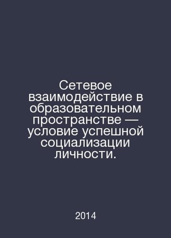 Networking in the educational space is a condition for successful socialization of the individual. In Russian /Setevoe vzaimodeystvie v obrazovatelnom prostranstve uslovie uspeshnoy sotsializatsii lichnosti. Collection of Articles. Issue 7. Edited by V.S. Bilkov, Barnaul ACPL 2014.Contact us for details or to request photos of available books. Delivery of this book could take longer than normal due to additional handling time before shipping, and no rush delivery options are available. Please let us know if you have a specific date by which you need to receive your order.SKUalb04da08a5fe9c7a09