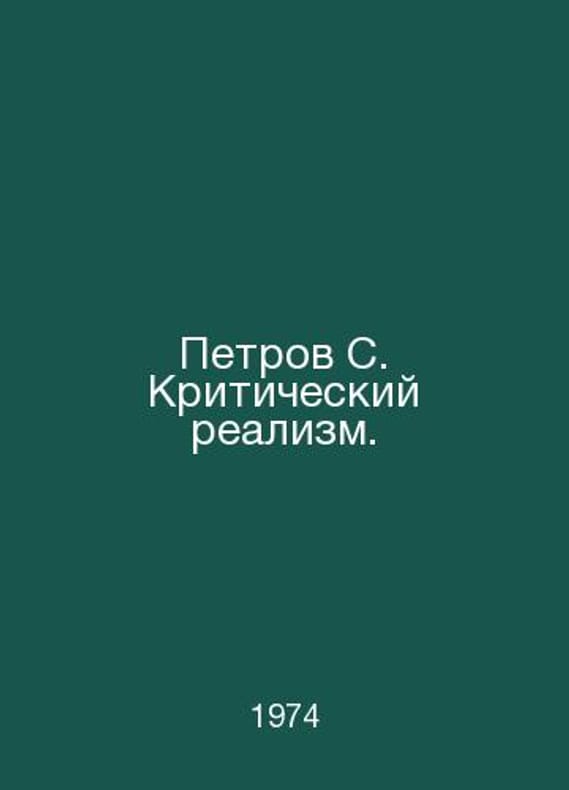 Petrov S. Critical Realism. In Russian /Petrov S. Kriticheskiy realizm. M Sovremennik 1974. Contact us for details or to request photos of available books. Delivery of this book could take longer than normal due to additional handling time before shipping, and no rush delivery options are available. Please let us know if you have a specific date by which you need to receive your order. SKUalb052da46dc8045b47