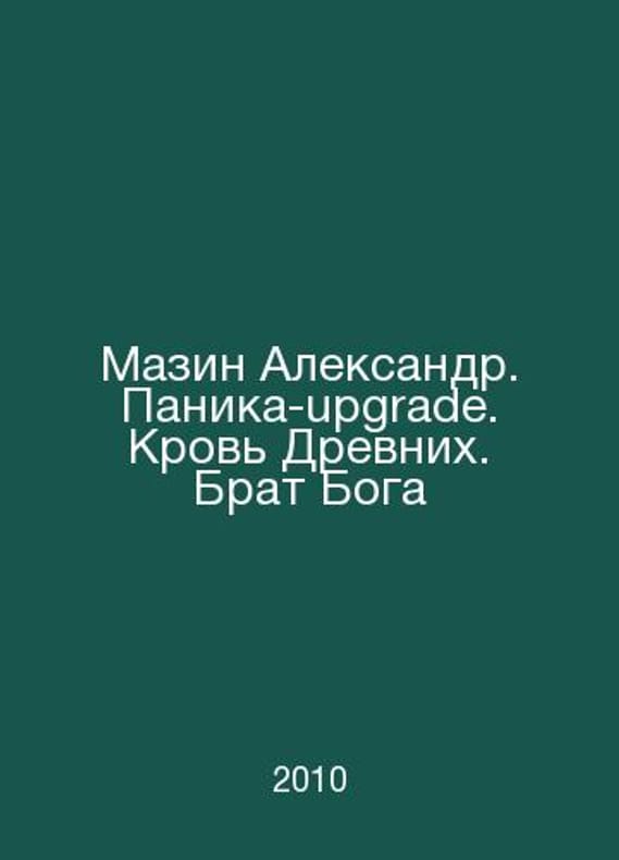 Mazin Alexander. Panic-upgrade. Blood of the Ancients. Brother of God In Russian /Mazin Aleksandr. Panika-upgrade. Krov Drevnikh. Brat Boga Series: Under the Watches of M. ACT 2010. Contact us for details or to request photos of available books. Delivery of this book could take longer than normal due to additional handling time before shipping, and no rush delivery options are available. Please let us know if you have a specific date by which you need to receive your order.SKUalb05685a20a20033ce