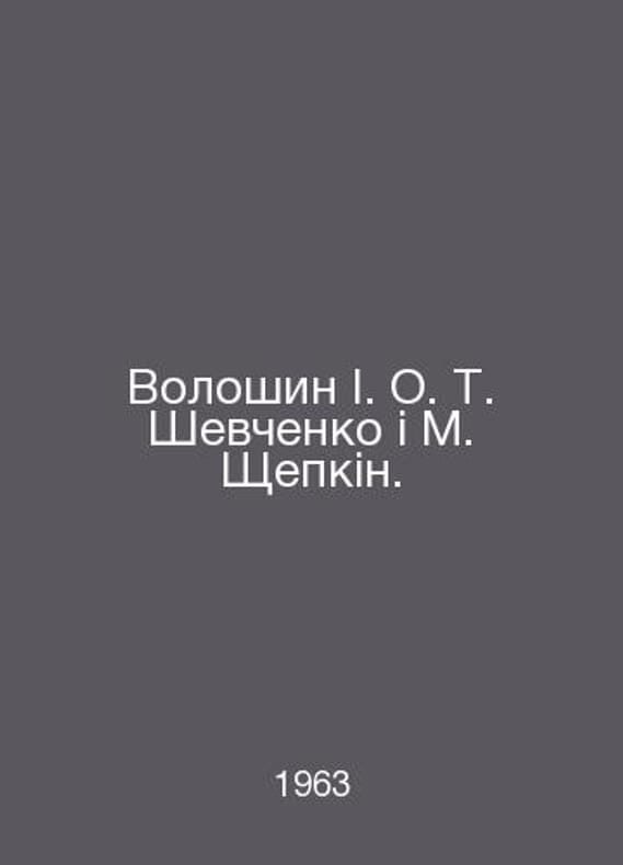 Voloshin I. O. T. Shevchenko and M. Shchepkin In Russian /Voloshin I. O. T. Shevchenko i M. Shchepkin. Kyiv State Power, Mistetztvo 1963. Contact us for details or to request photos of available books. Delivery of this book could take longer than normal due to additional handling time before shipping, and no rush delivery options are available. Please let us know if you have a specific date by which you need to receive your order. SKUalb05700b983630bcca